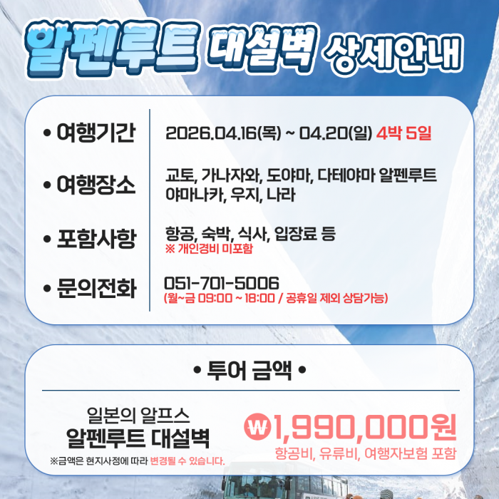 4월에 만나는 동양의 알프스, 북일본 알펜루트 대설벽여행(4월 16일~20일 / 4박5일) > 일본
