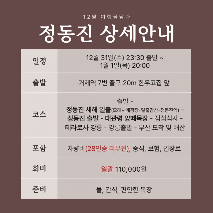 정동진 새해 일출여행 / 12월 31일(수)~1/1(목)