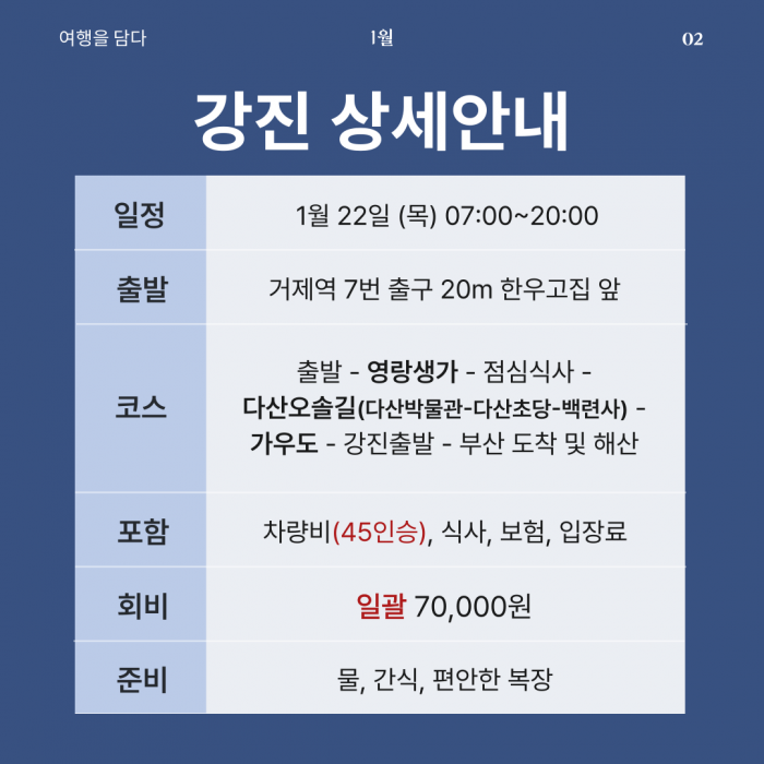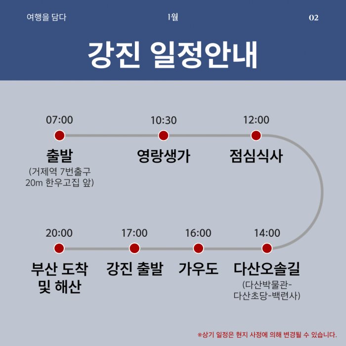 [1월&인문투어] 강진 / 1월 22일 (목) 요약정보 및 구매
