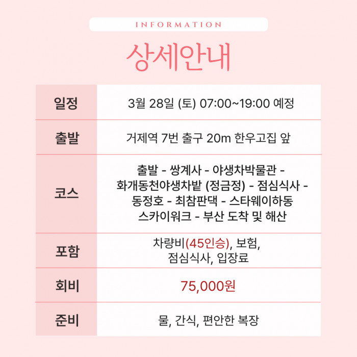 [3월 여담] 하동 / 3월 28일 (토) 요약정보 및 구매